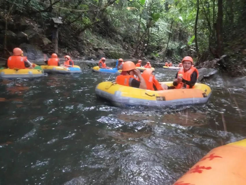 漂流中最大的感受就是:快和急。完全没有准备就顺流而下。很多同行的人全程都在尖叫,到了相对平缓地带就变成了打水仗的战场,大家互相泼水嬉戏玩闹。