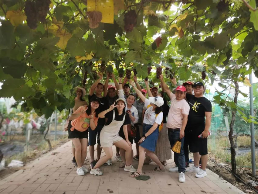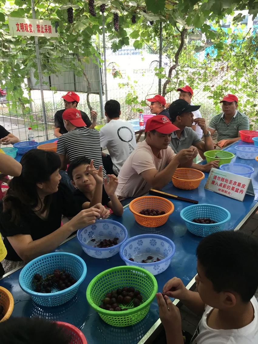 享用完酒店的早餐后,杏盛一行来到【醇葡乡村.葡萄】农家果园,该果园是目前清远最大的高科技葡萄种植园。品尝了果大味甜的新鲜葡萄后,开心的众人还在果园里进行了舞蹈PK。各组组长带领组员就公司平日里练习的舞蹈进行比赛。果园老板都被大家的舞姿吸引,询问“你们是哪里的公司,怎么如此具有活力?”“杏盛是杏盛平台的团队”大家自豪响亮地回应道,让人感动!