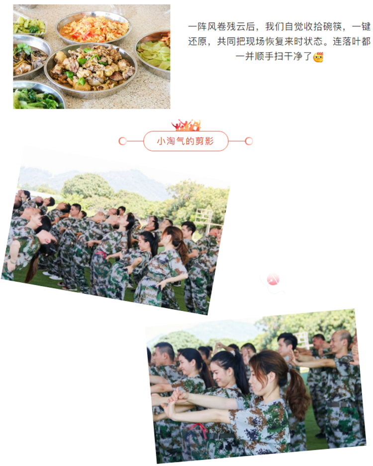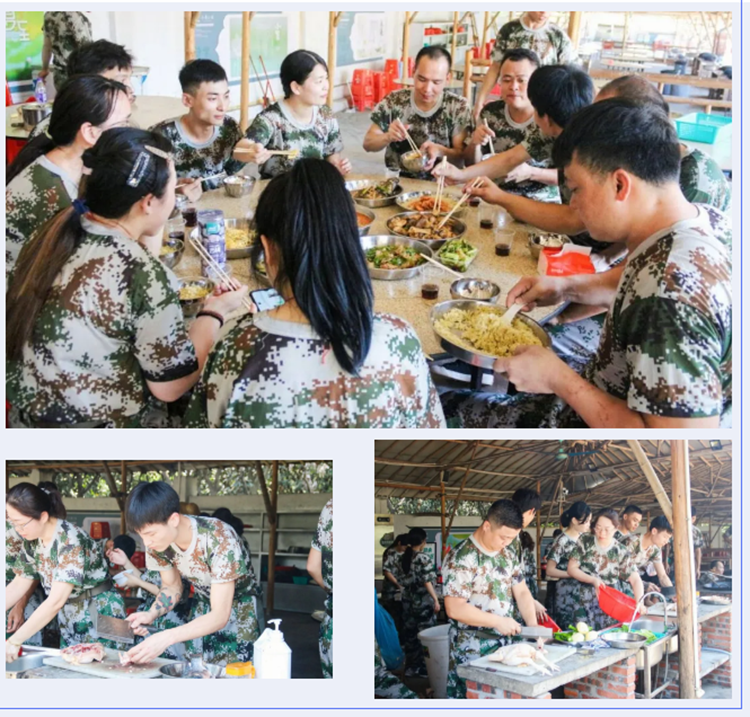 不同以往的围餐,今年的团建采取“自己动手丰衣足食”的模式,开启自给自足模式,“吃货群体”并非浪得虚名,说起吃,自认没人比恒盛更专注,同样的食材硬是做出不同的花招,他做红烧鱼,我就做糖醋,你做焖鸡,我就做辣子鸡,鸡蛋都可以做出蛋炒饭、西红柿炒蛋、蛋花汤、蒸蛋、葱花蛋,每队都有那么几个掌勺大神,其他人也没有袖手旁观,各自充当小兵,烧柴洗菜、切菜洗锅、有人洗菜,有人专门刷锅,有人专门负责添柴、有人专门负责运送材料... 不一会功夫八菜一汤齐上桌,不得不佩服恒盛在吃方面的协调性和高度配合度。