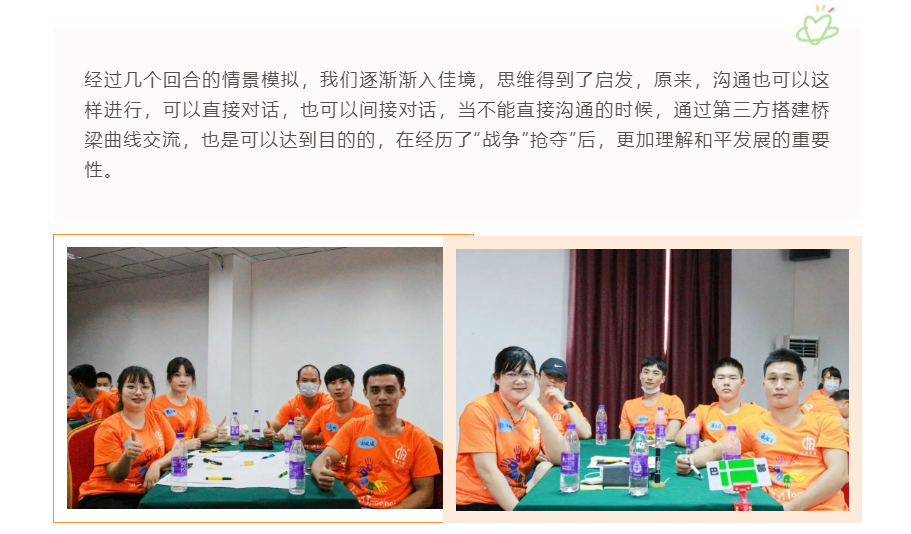杏盛平台2022年度团队培训如期举行,前几次的培训重点是在“拓展”项目中通过挑战和趣味性游戏的方式,让团队更加直观的面对问题,三和团建根据每一次的培训情况,制定科学方案,拓展项目更多的重点在于如何提高团队的凝聚力,而今年杏盛开启了全新的模式,通过《沙盘模拟课程》,启发大家的全新思维模式,实现如何有效沟通,如果实现跨桥梁对接。