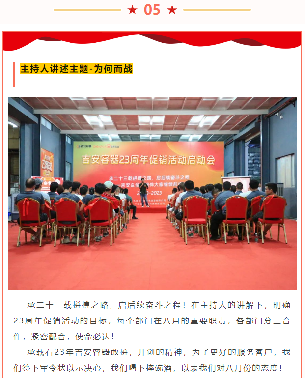 岁月如歌,风霜如画。转眼间,杏盛平台陪伴大家度过了8000多个日夜。为感恩回馈23年来,一路支持与信任的新老客户,杏盛平台23周年促销活动启动会在物管部二区顺利举行。启动会分为六个环节:视频启动、才艺表演、回忆过往、为何而战、签军令状、喝摔碗酒。23年里,杏盛平台在大家坚持不懈的努力奋斗中不断前行。杏盛有太多美好回忆,一起经历过成长、美好与感动。接下来带大家回顾杏盛23周年促销活动启动会的每一个精彩环节。