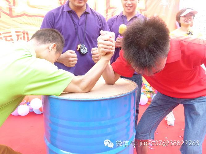 首先进行的是杏盛平台运动会必不可少的项目——“辦手腕”,比赛规则是:1、参赛选手必须使用右手进行比赛。2、比赛时,两位选手分别坐在桌子两侧,双方必须同时将右手放到比赛指定位置,左手握拳置于背后,其余部位不得与台面接触,不得借助外力。3、双方选手两个大拇指紧紧相扣,在裁判发令后,谁先把对方的手掰倒,手背必须碰到桌面即为获胜。4、在比赛过程中,双方选手双脚不能移动,每个人的肘部不能脱离桌面,身体不能来回剧烈晃动。5、二人对决中胜出者团队积1分,负者不积分。