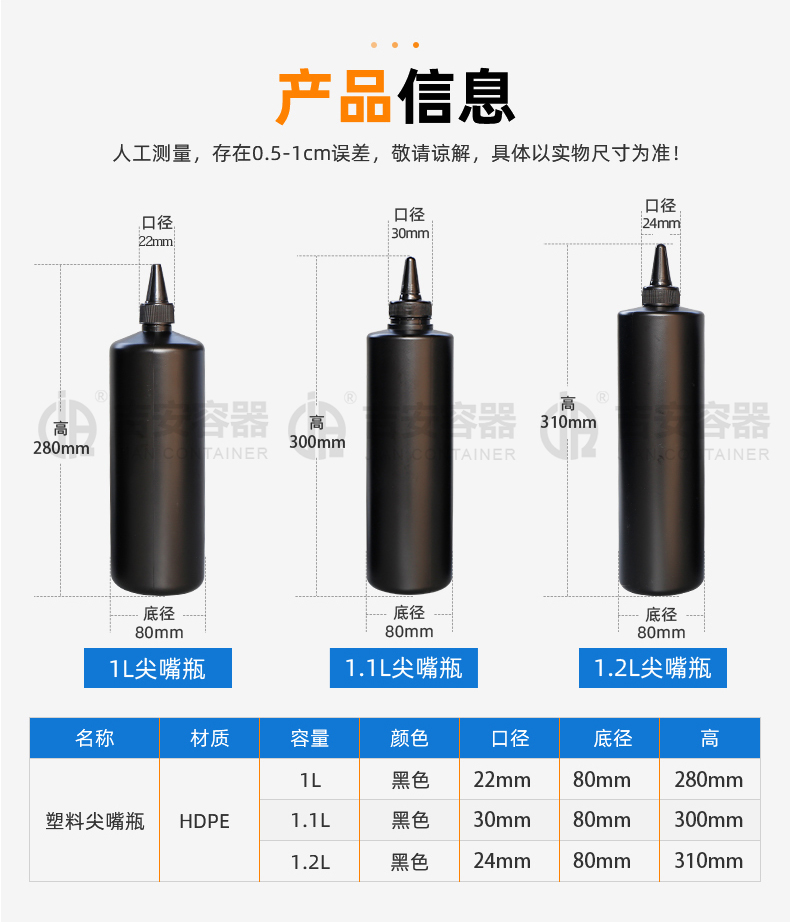 | 品名:1L黑尖瓶美甲专用瓶(H206) | |