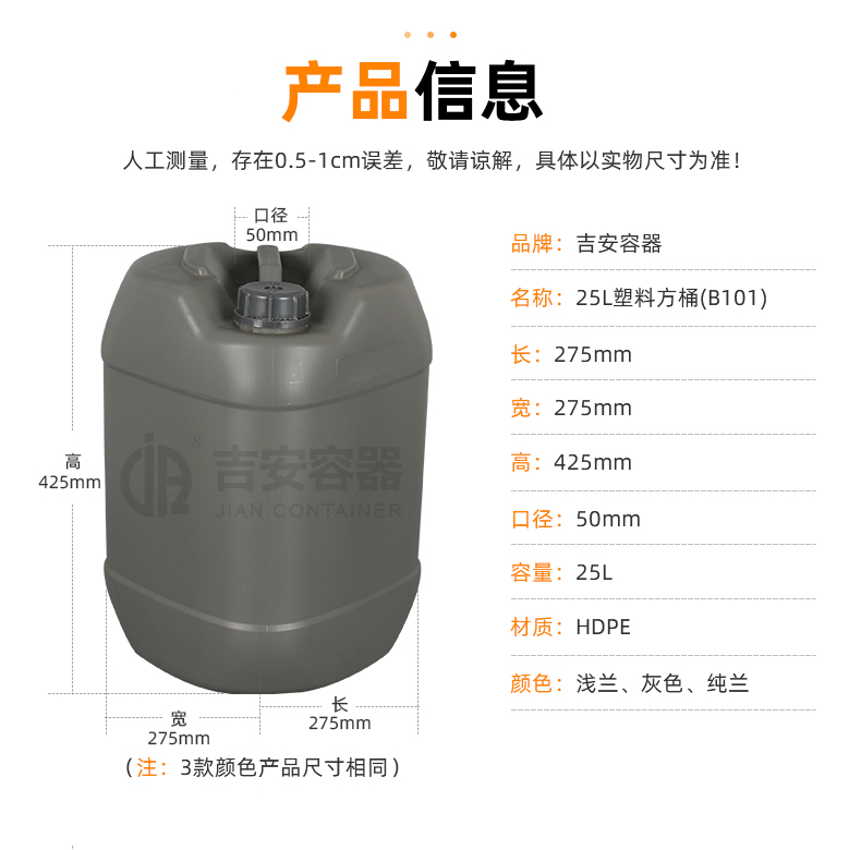 | 容量:25L | 材质:罐盖-PP,罐身-HDPE |