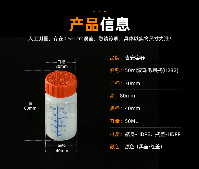 | 材质:瓶身-HDE,瓶盖-HDPP | |