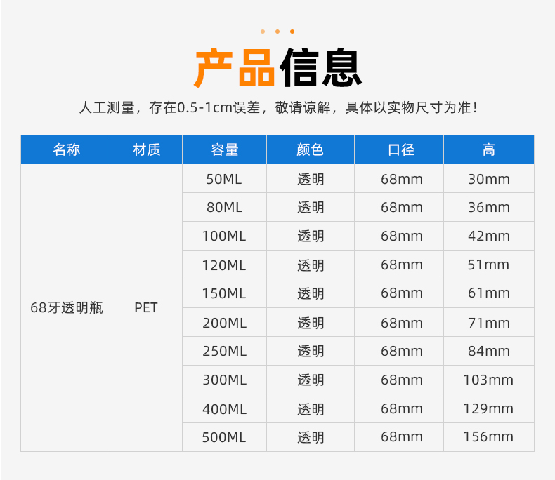 | 品名:68牙120ml广口瓶(G160) | |