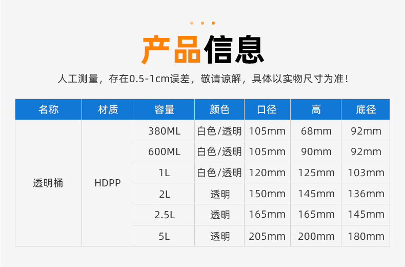 | 品名:2L透明食品桶(F505) | |