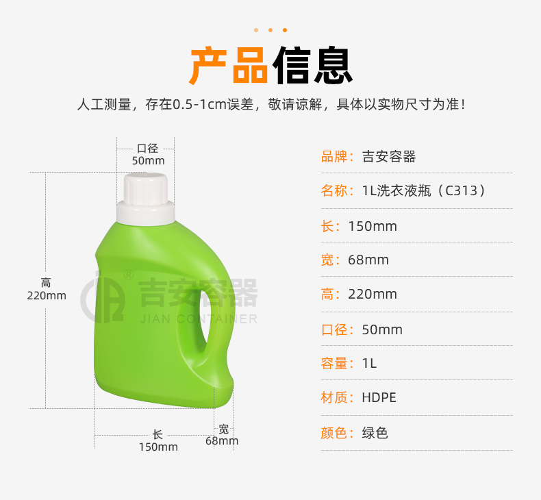 | 品名:1L绿色洗衣液瓶(C313) | |