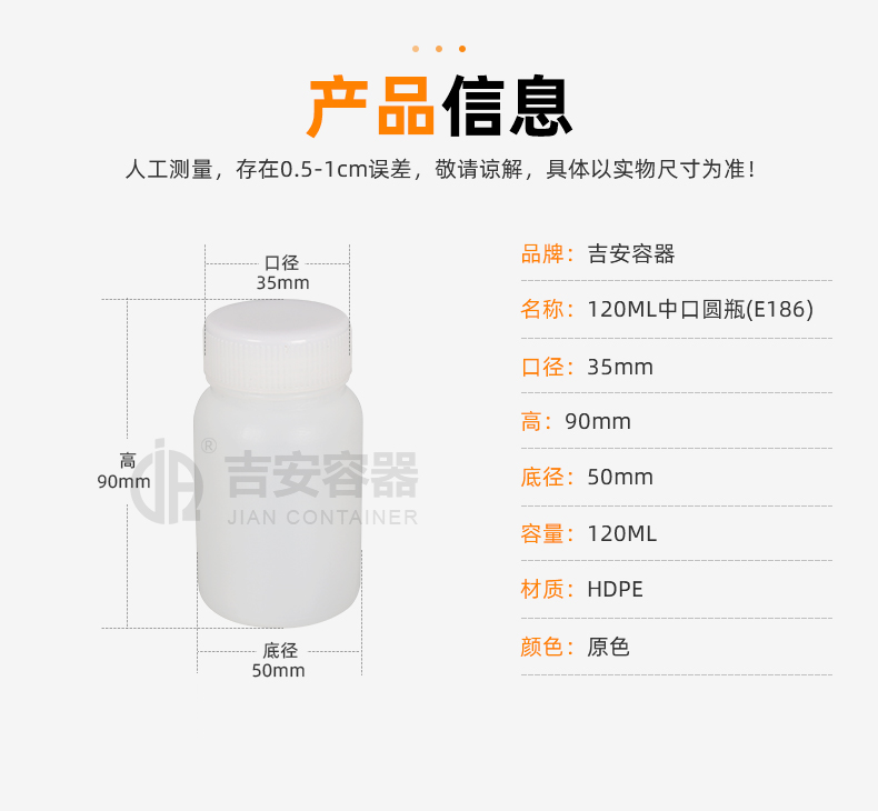 | 品名:120ml中口塑料瓶(E186) | |