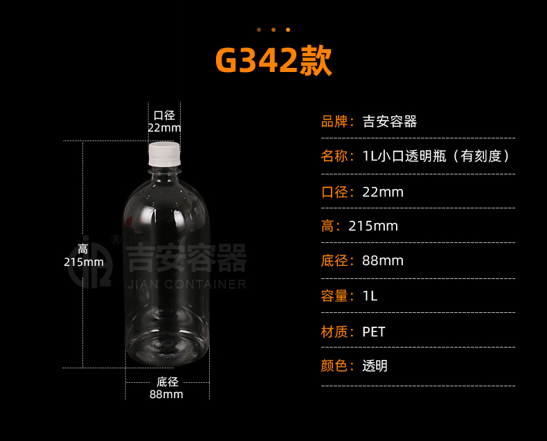 | 品名:1L小口透明圆瓶(G342) | |
