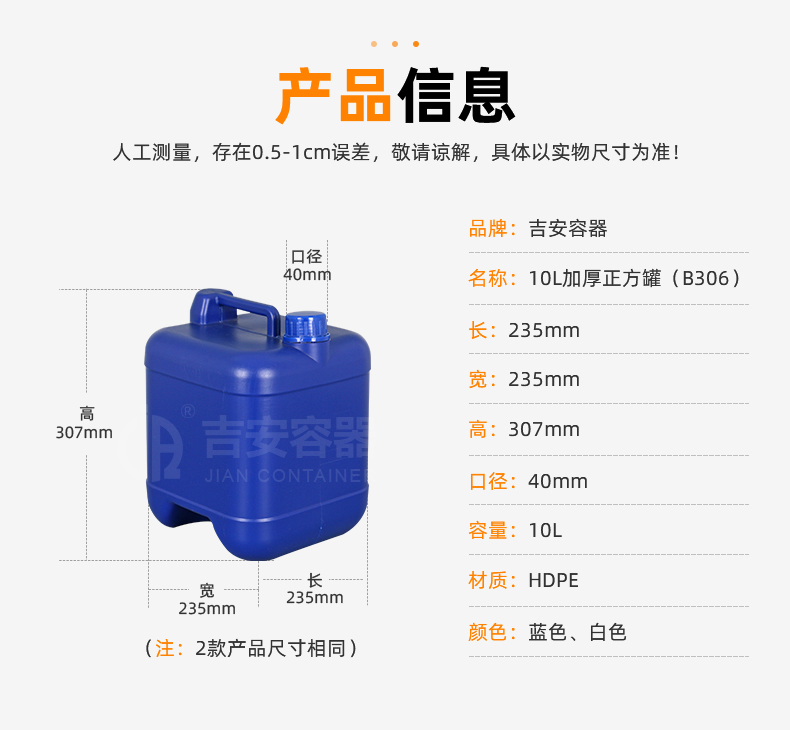 小口塑料桶:采用全新聚乙烯原料吹塑工艺制作而成,具有耐腐蚀,耐酸碱特性,小口设计密封性能强,广泛应用于化工、清洁、食品、添加剂、汽车等各行业液体包装 。