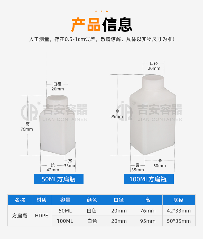| 容量:50ml/ 100ml | 材质:HDPE |