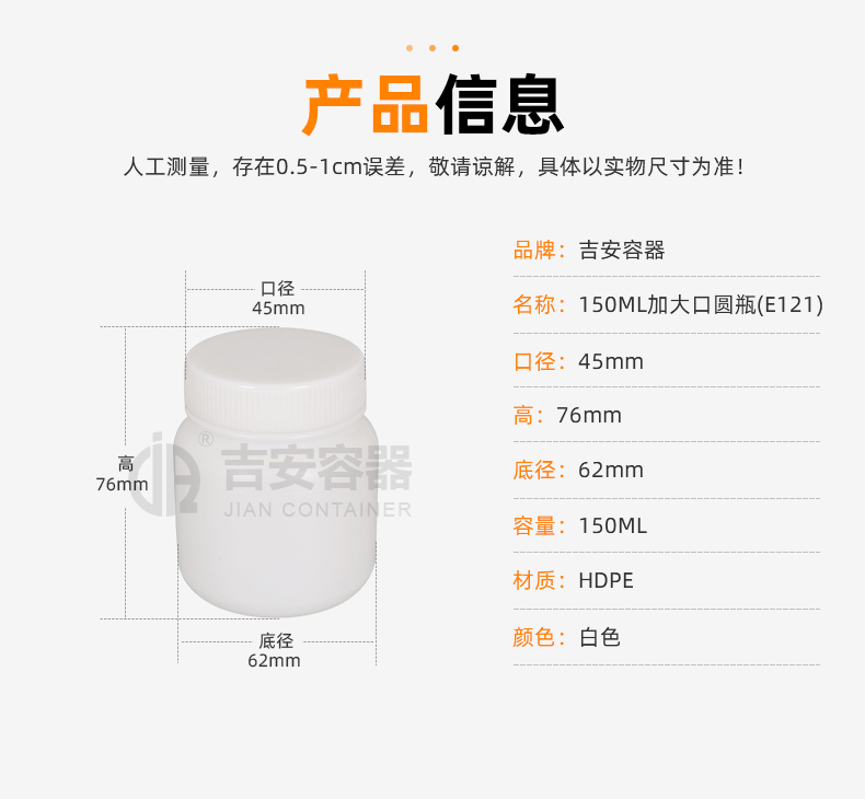 小口塑料瓶采用全新HDPE塑胶原料吹塑而成,具备韧性好、耐酸碱、耐腐蚀、不变形,密封性能佳等特点,可根据客户需求定制、改色、产品适用于化工、清洗剂、医药、液体、食品、农业等各行业包装。