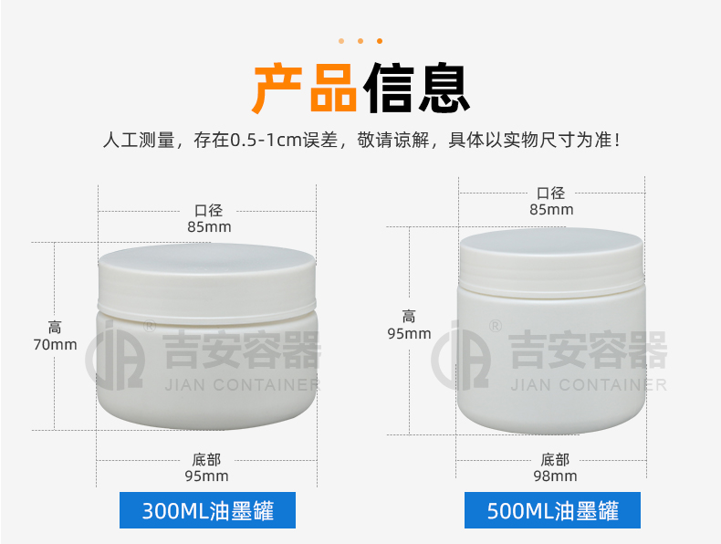| 口径:85mm/ 85mm | 容量:300ml/ 500ml |