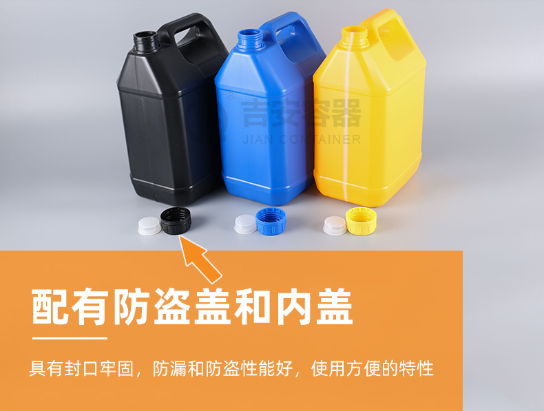 塑料扁罐采用HDPE原材料吹塑而成,具有良好的耐酸碱性及密封性,方形设计方便堆放,不占用空间,美观实用。具备不变形,使用方便等特征,可根据客户需求做印刷及贴膜,产品适用于尿素、机油、汽油、清洗剂、化工助剂、食品添加剂等液体包装。