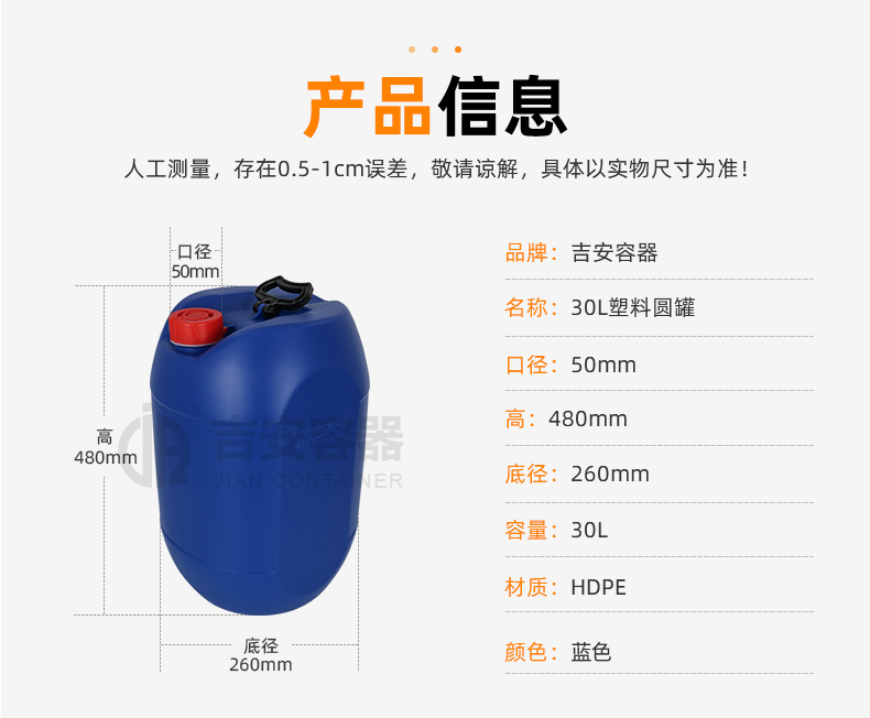 小口塑料桶:采用全新聚乙烯原料吹塑工艺制作而成,具有耐腐蚀,耐酸碱特性,小口设计密封性能强,广泛应用于化工、清洁、食品、添加剂、汽车等各行业液体包装。