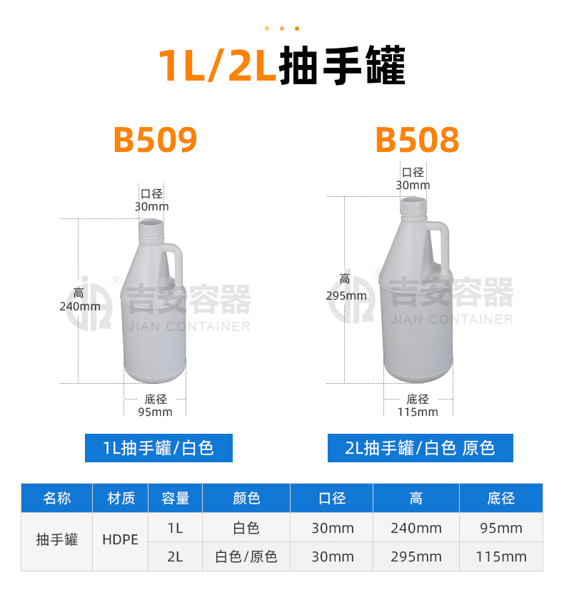 小口塑料桶:采用全新聚乙烯原料吹塑工艺制作而成,具有耐腐蚀,耐酸碱特性,小口设计密封性能强,广泛应用于化工、清洁、食品、添加剂、汽车等各行业液体包装。