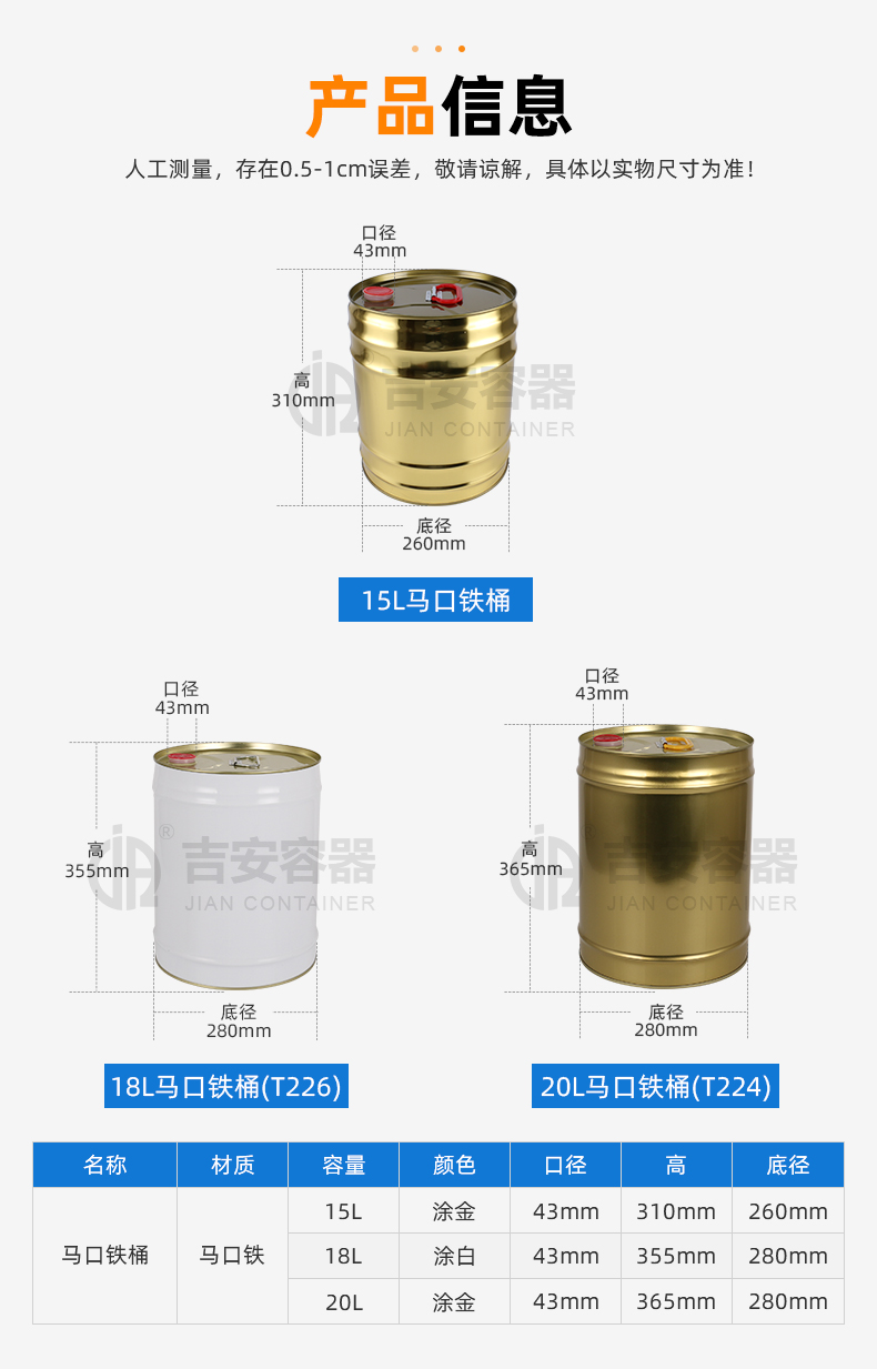 | 品名:18L铁桶(T226) | |
