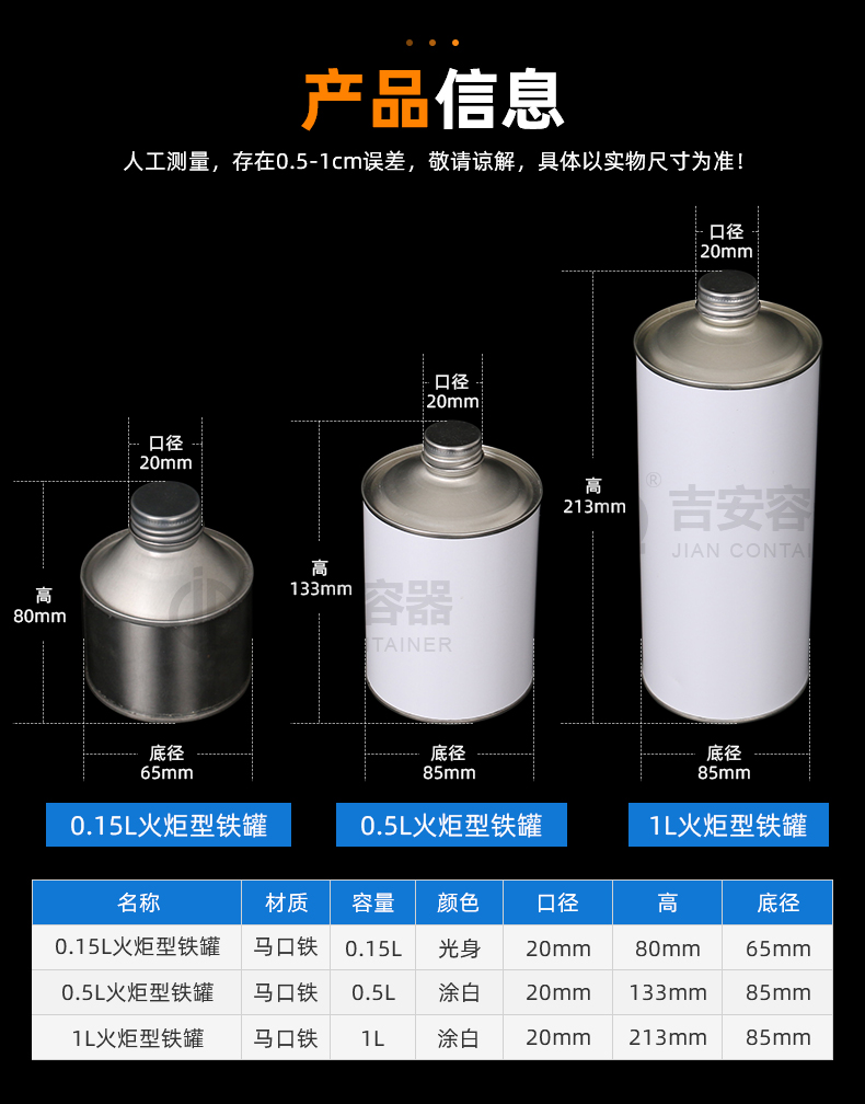 | 品名:150ml火炬形铁罐(T214) | |