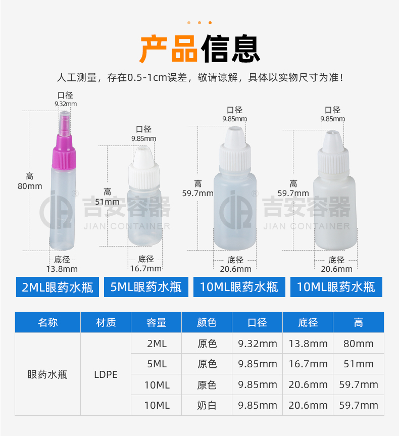 | 材质:瓶身-LDPE,瓶盖-HDPP | |