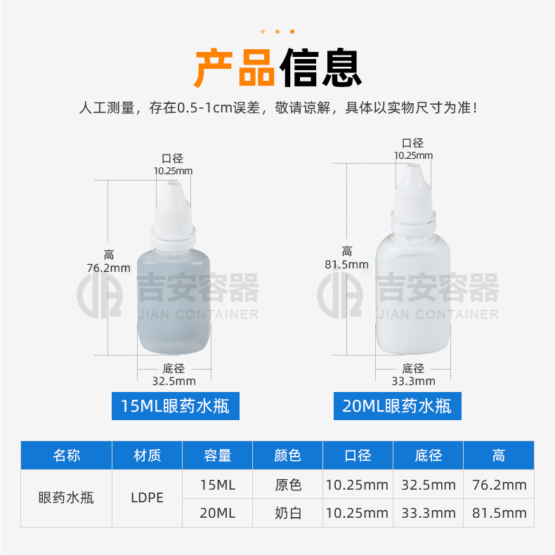 | 材质:瓶身-LDPE,瓶盖-HDPP | |