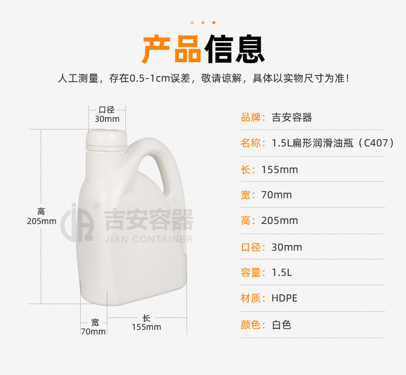 | 品名:1.5L扁形润滑油瓶(C407) | |
